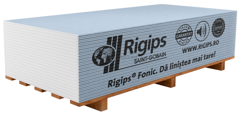 Гипсокартон Rigips Fonic тип D для звукоизоляции имеет размеры толщина 12,5 мм, ширина 1200 мм и длина 2000 мм.